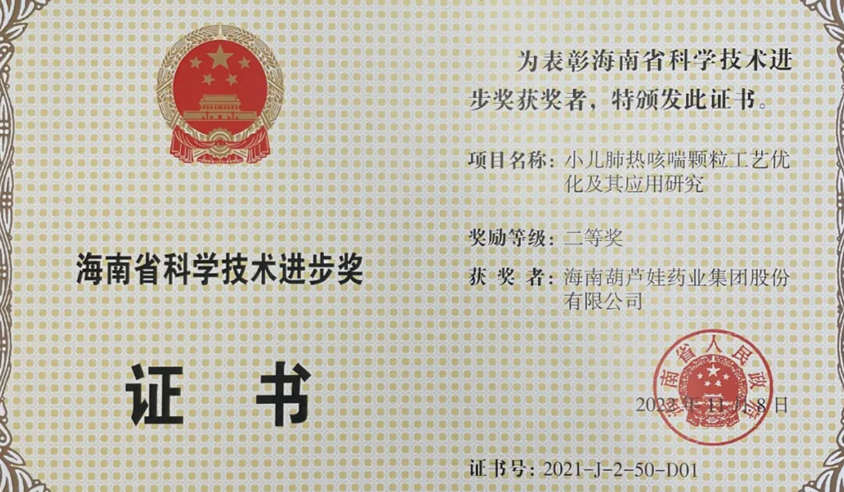 荣获海南省科学技术进步奖